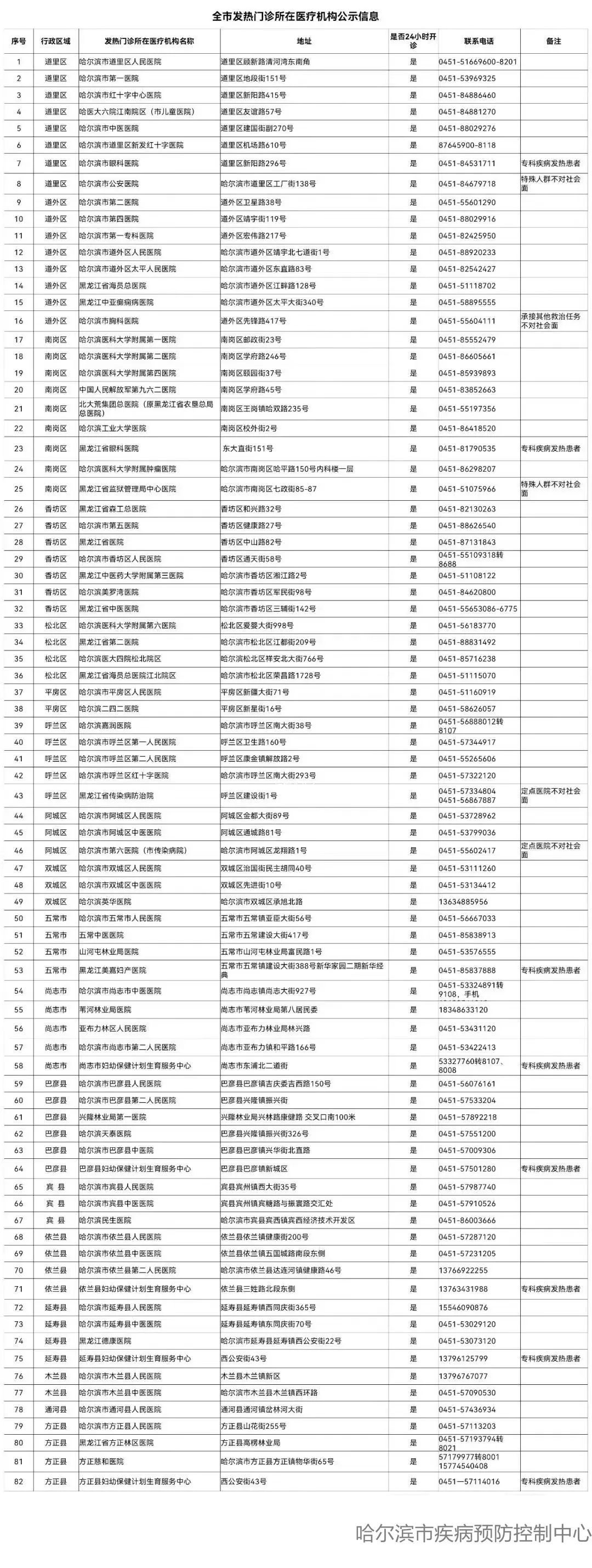 12月10日,哈爾濱市疾控中心公示全市發(fā)熱門診所在醫(yī)療機(jī)構(gòu)。