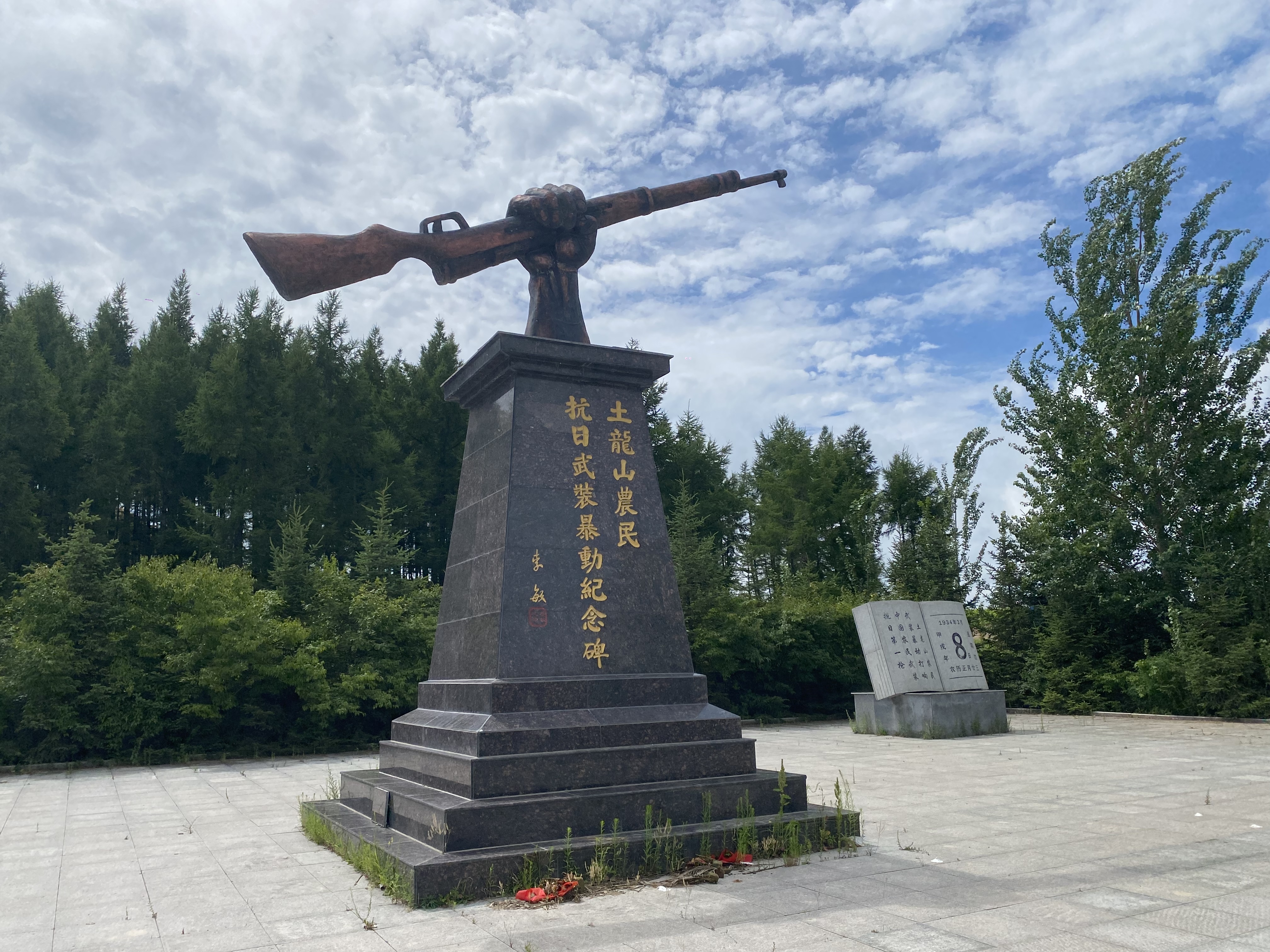 在佳木斯市樺南縣土龍山鎮(zhèn)西側的開闊地帶,一座花崗巖紀念碑直刺蒼穹。碑頂,一只青銅鑄就的“巨手”沖破巖石的束縛,將一支“步槍”奮力擎向天際——這凝固的瞬間,正是1934年那個寒意料峭的初春,土龍山的怒吼。