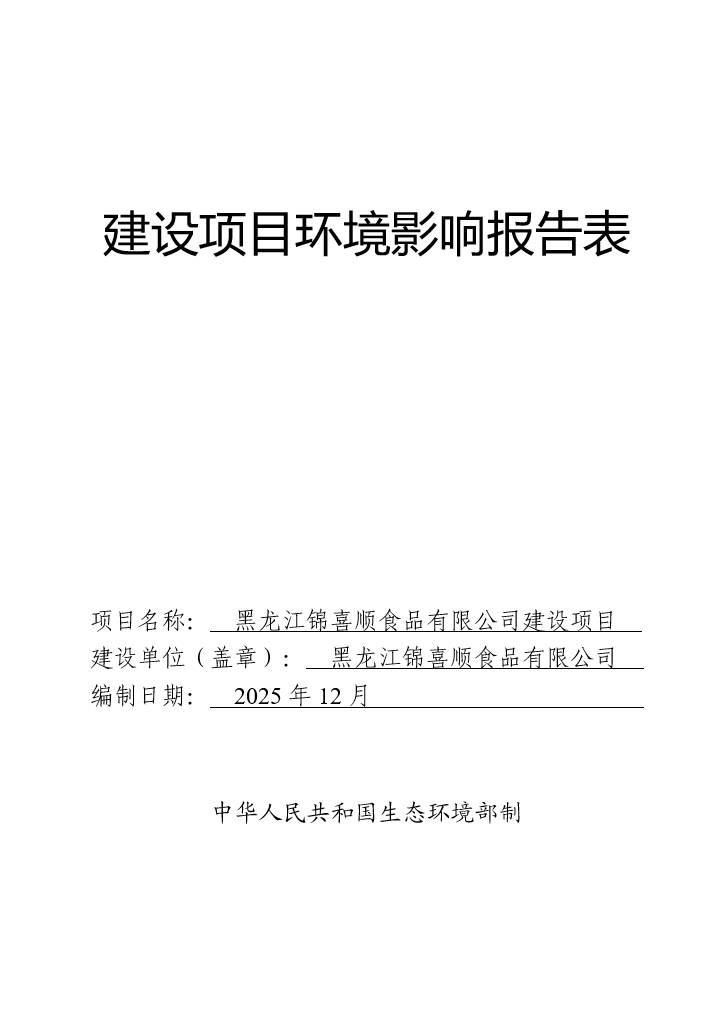 黑龍江錦喜順食品有限公司建設(shè)項(xiàng)目環(huán)境影響報(bào)告表